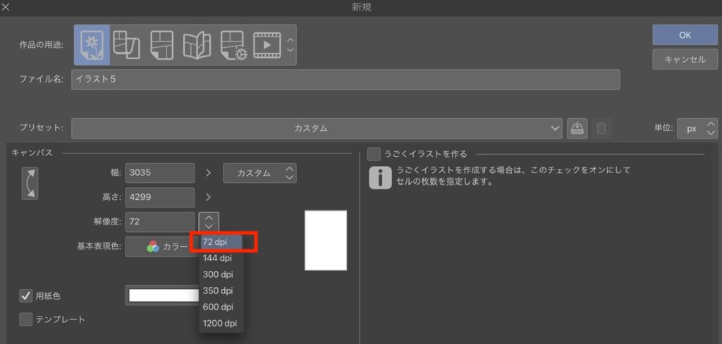 クリスタのおすすめの解像度 dpi とキャンバスサイズは?イラストサイズを用途別に解説!つかえるイラスト。