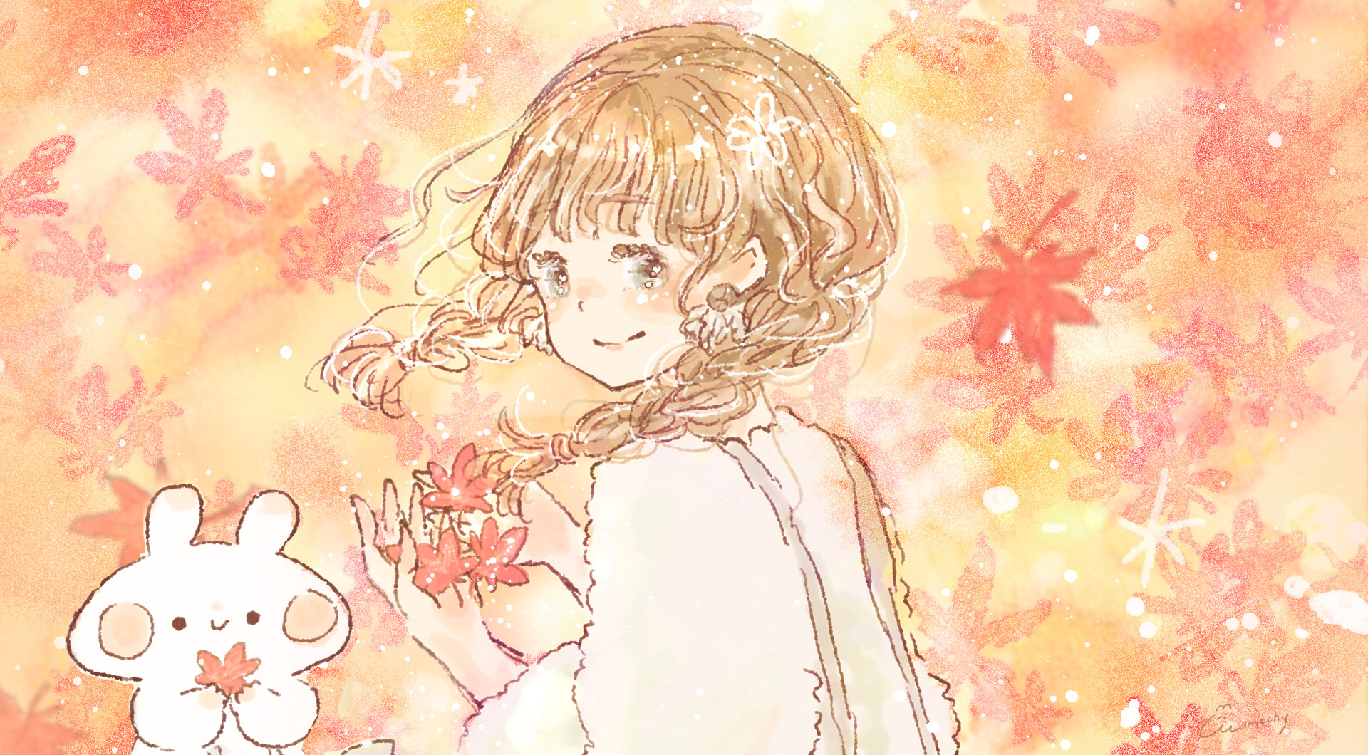 パソコンのデスクトップ画像・壁紙に使える*紅葉 モミジ のイラストmomochyのおうちイラストレーターももちーのWebサイト。