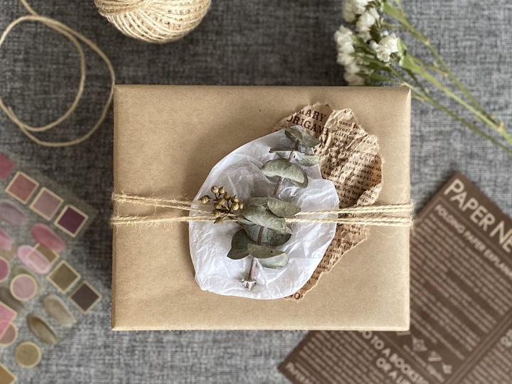 クラフト紙のおしゃれな包み方❘100均でできるラッピングアイデア。