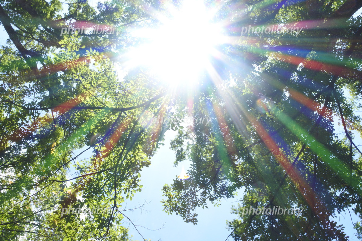 竹林に降り注ぐ虹色の太陽の光の写真・画像素材-Snapmart スナップマート。