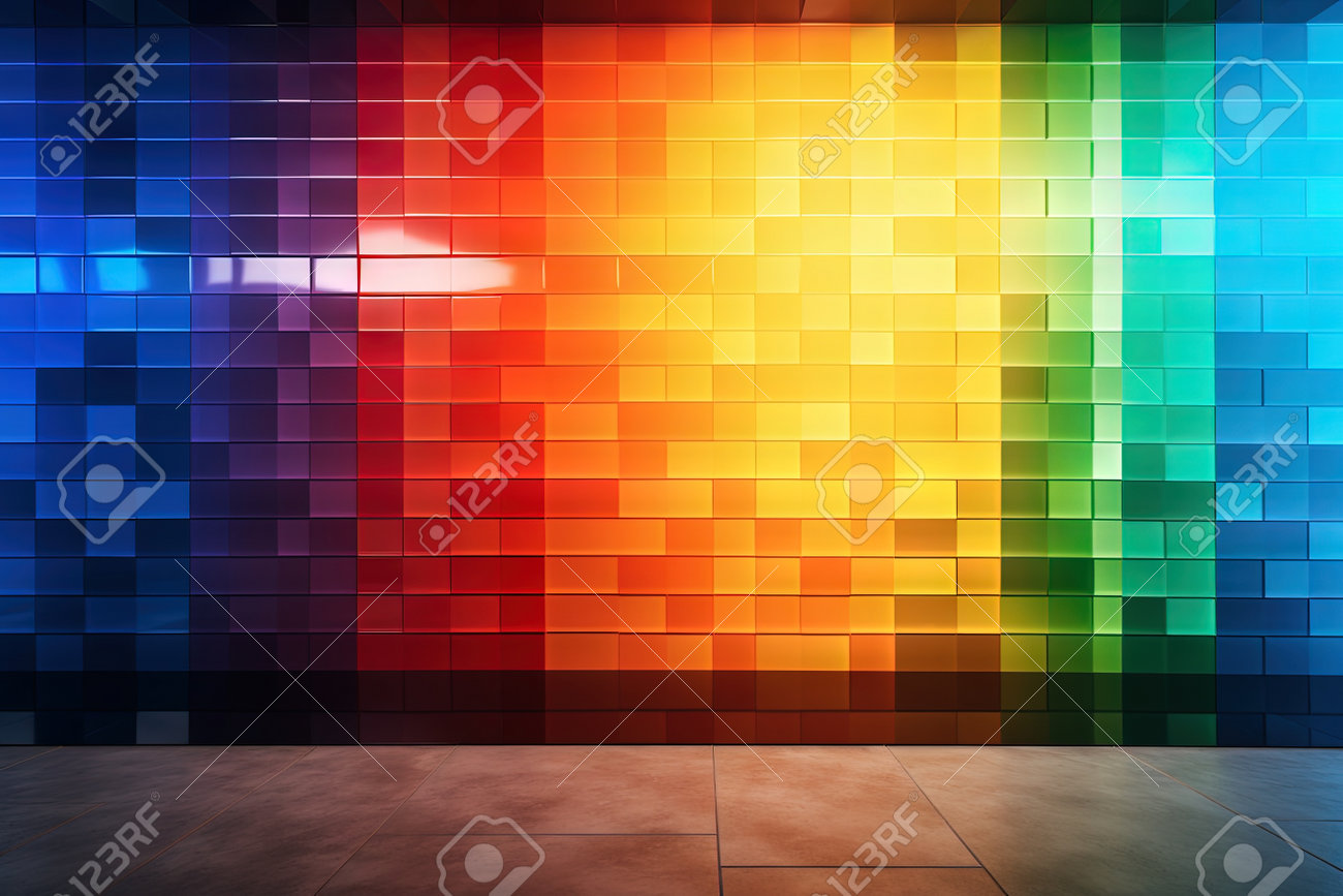 虹色の光の分散と屈折の色を持つ壁に反射する太陽光の写真素材・画像素材 Image 212822914。