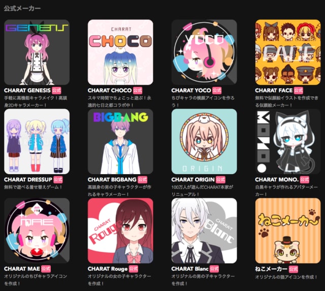 キャラメーカーのWebアプリ「CHARAT」。着せ替え感覚でキャラデザに便利お絵かき図鑑。