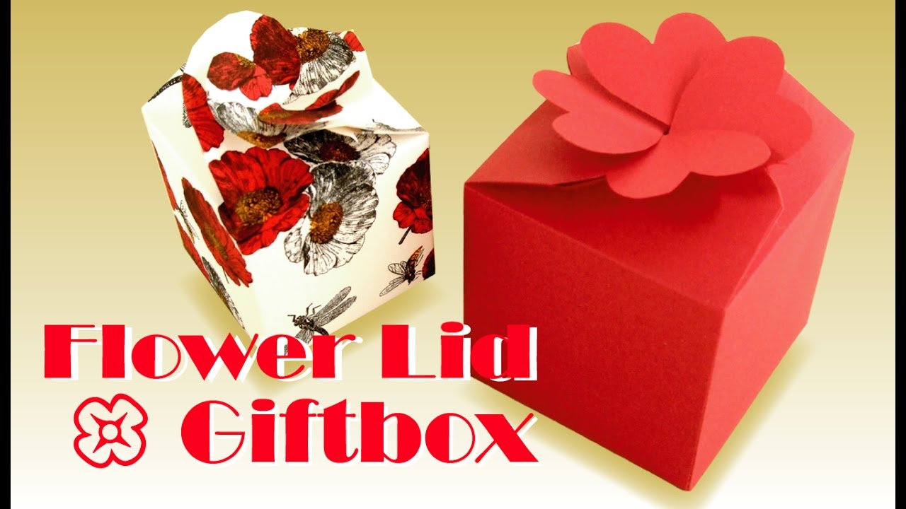 ギフトボックスの作り方 簡単Origami Gift Box with Flower Lid。