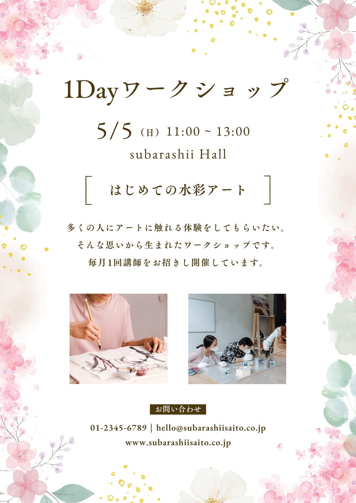 ワークショップチラシテンプレートでおしゃれな体験教室や体験会、無料体験・体験募集のデザインを無料で作成!Canva。