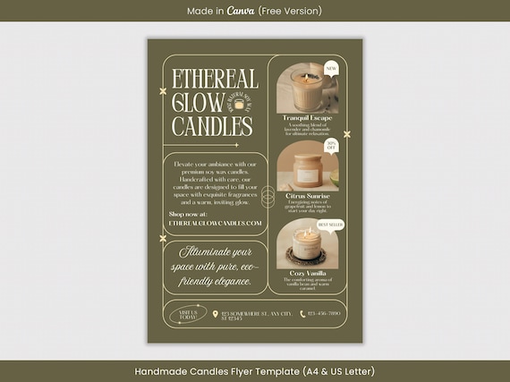 キャンドル作りのビジネスチラシテンプレート:モダンなデザイン Canvaで編集可能、A4サイズとUSレターサイズ- Etsy 日本。