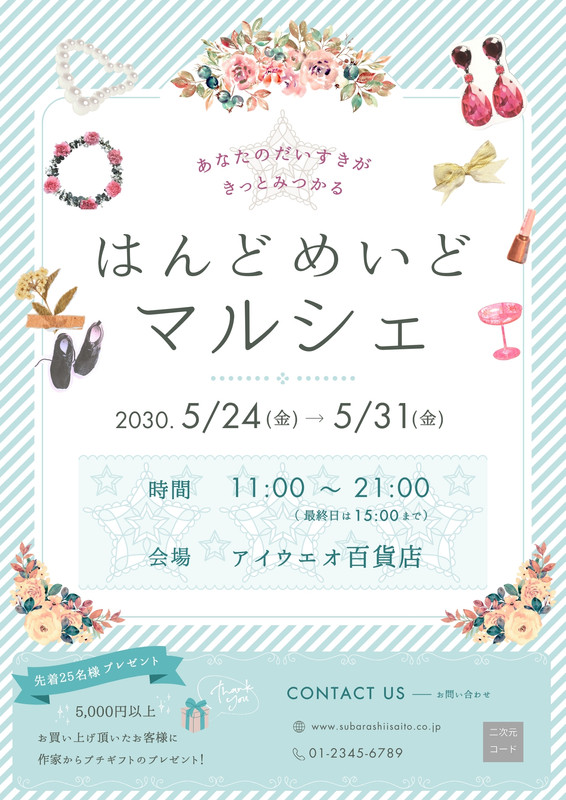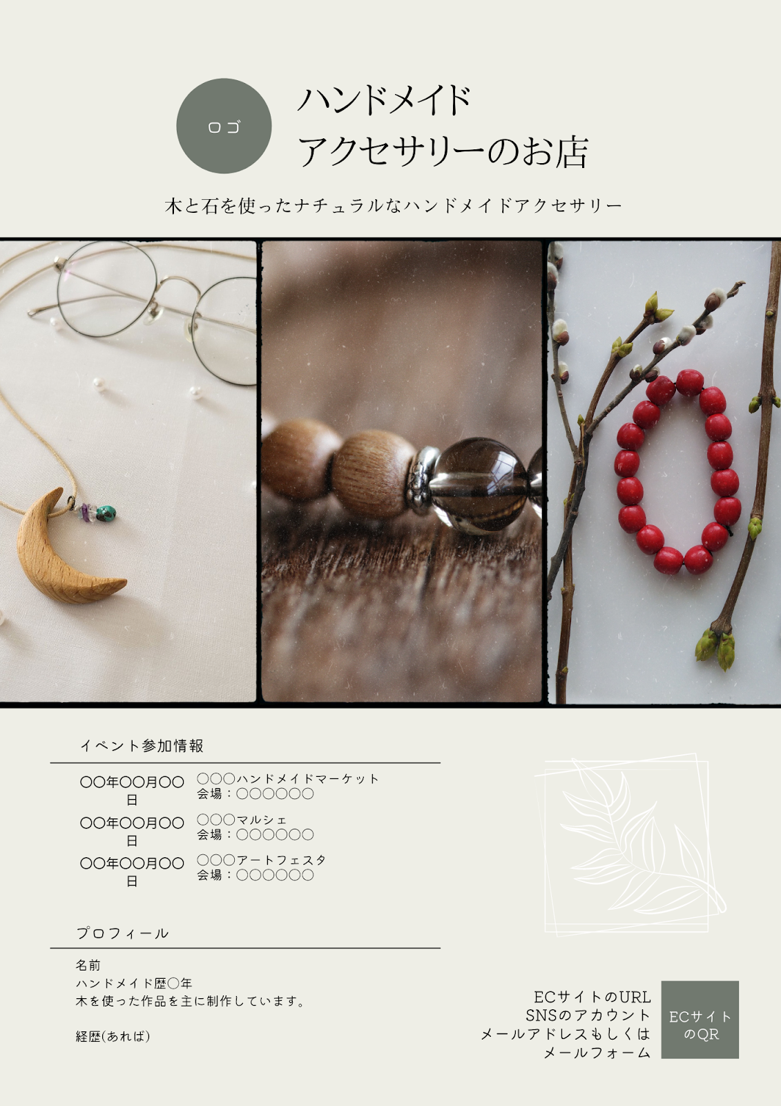 女性向け・ナチュラルな雰囲気のチラシ作成します 現役ハンドメイド作家がトレンド感のあるデザインをご提案しますココナラ。