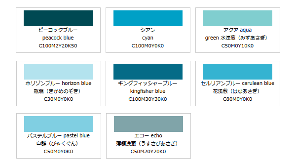 シアンの配色パターン 色の組み合わせ- 原色大辞典。