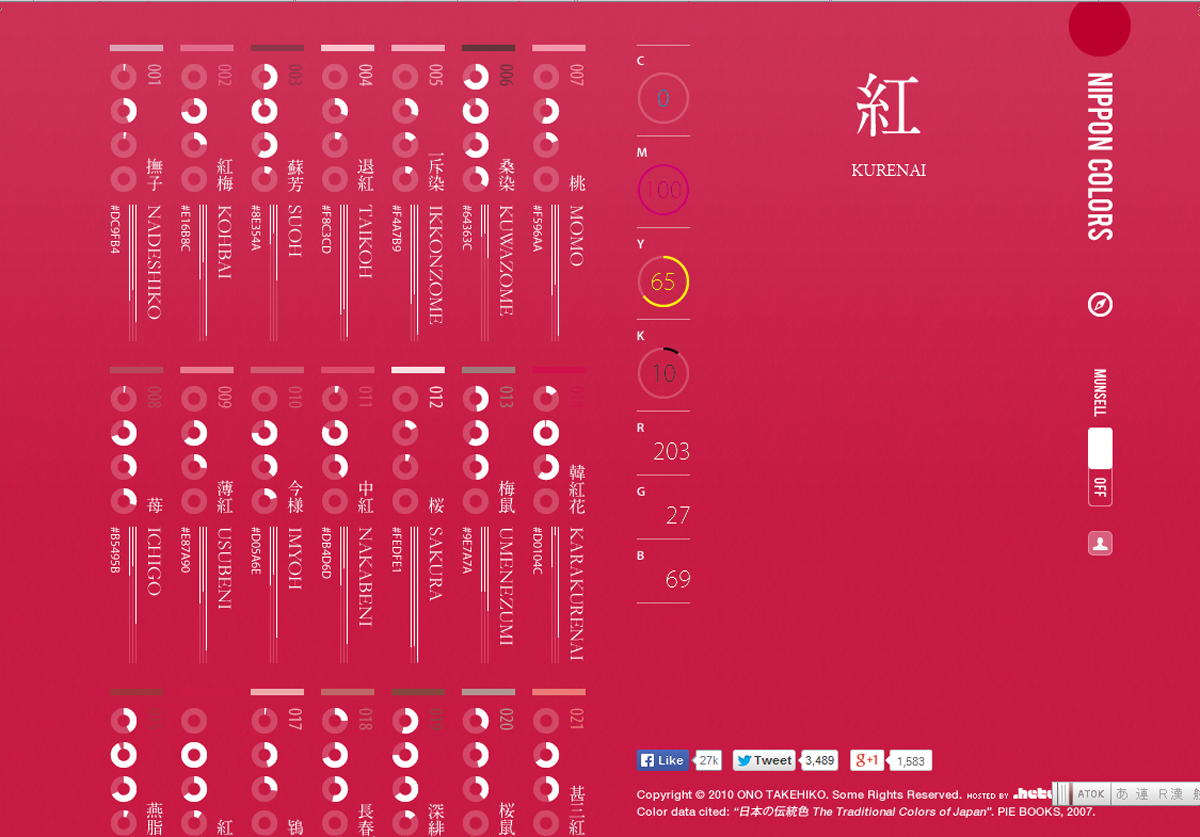 日本の伝統色が一目で分かり三原色・カラーコードも調べられる「NIPPON COLORS」 - GIGAZINE。