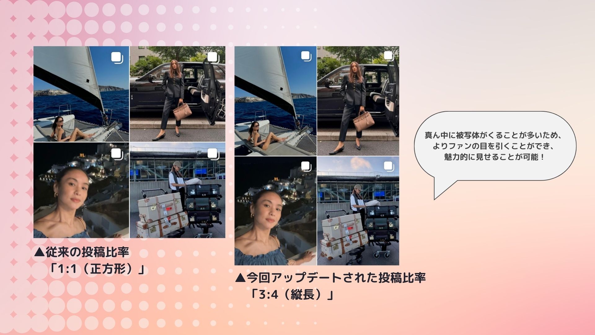 2025最新 インスタの投稿サイズが「縦長 3:4 」に!縦長投稿の比率や正方形に戻す方法まで徹底解説!fasme ファスミー。