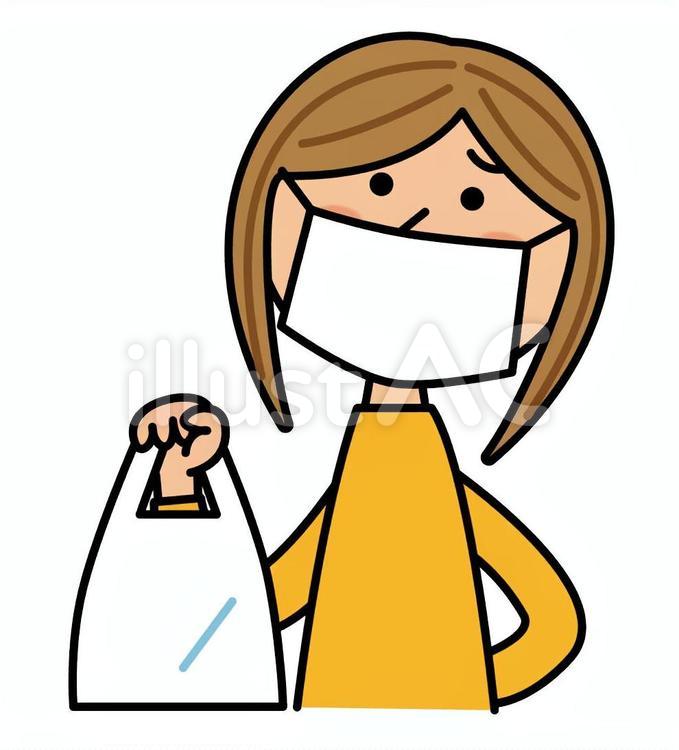 マスク姿 スーパーの袋を持つ女の子 赤イラスト - No: 1893249無料イラスト・フリー素材なら「イラストAC」。