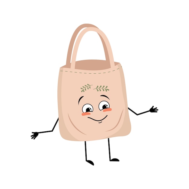 天然コットントートバッグ クロスバッグを搭載した漫画キャラクターの手描き ショッピング中のビニール袋の量を減らす イラスト進行で創造的な—ストックイラストレーション by © praditkhorn.gmail.com329650594。