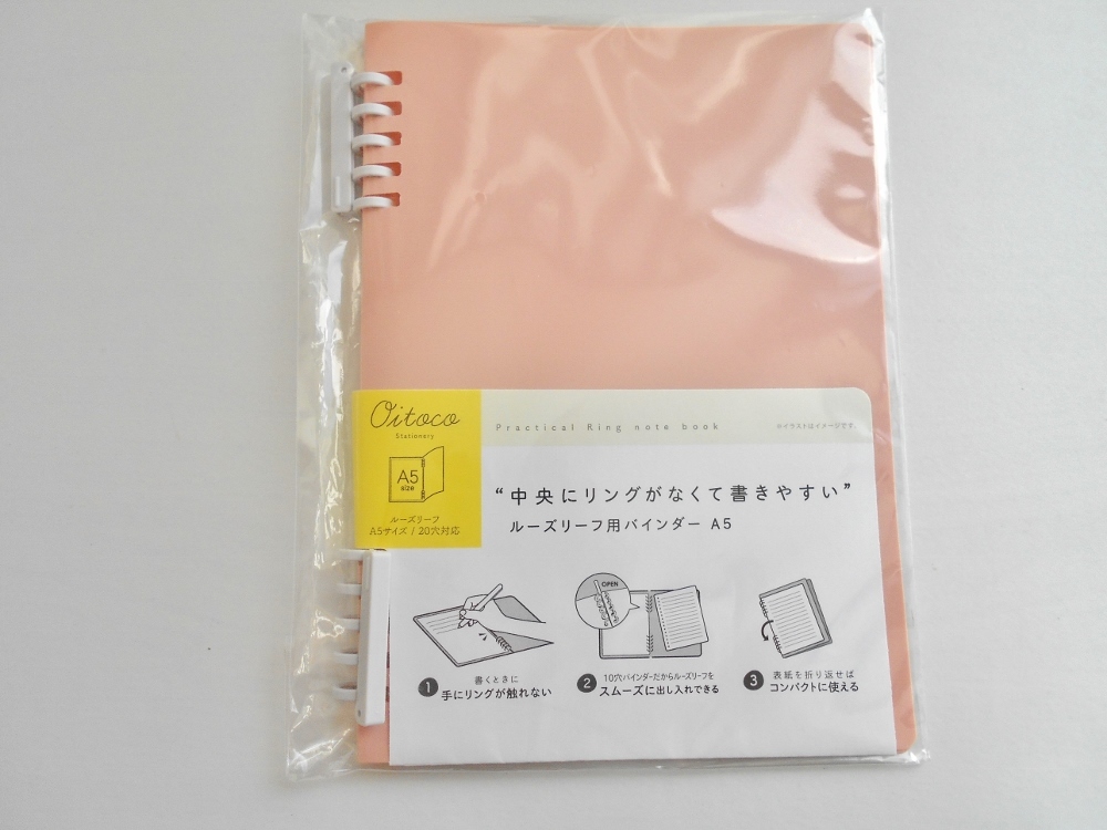 中央にリングがない。セリアの『ルーズリーフバインダー』。ノートのように使えるから使いやすい。そよ風。