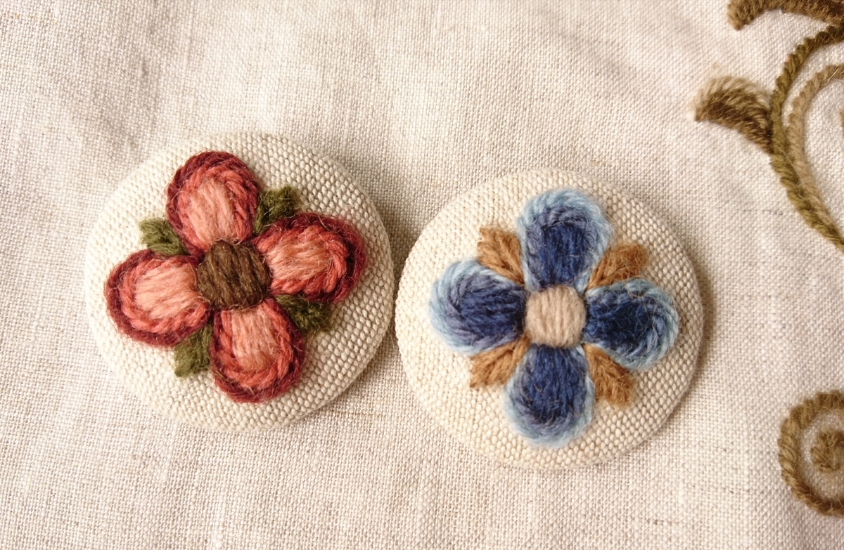 10 8 火 「ハンガリーの毛糸刺繍でつくるお花のブローチ」ワークショップのご案内 - 手芸古書と雑貨の店 folkloraの日誌。
