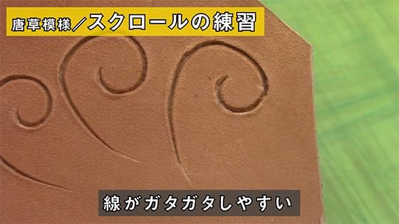レザークラフトレザーカービングマイブームのトラディショナルスタイル唐草模様leatherworkleathcravingleathercraftfloralcarvingTraditionalstyle刻印終了 次はデコレーションカット これは練習だから気楽に。