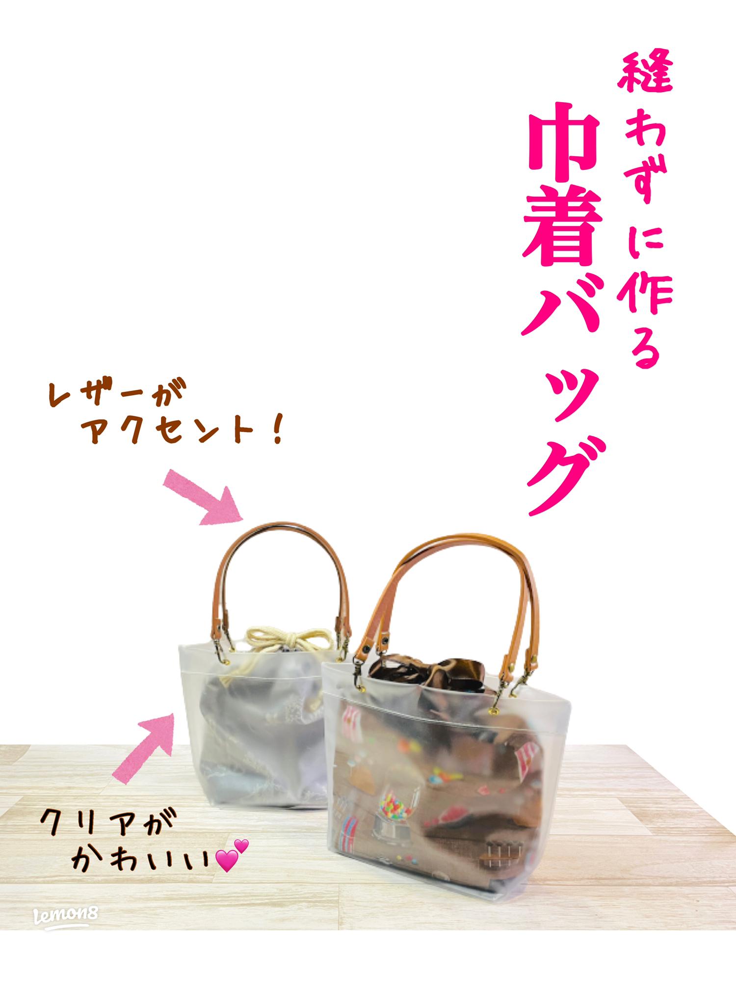 100均DIY 縫わない透明バッグ作り方・着せかえバッグ・紙袋リメイク・レザー使用 ダイソー。