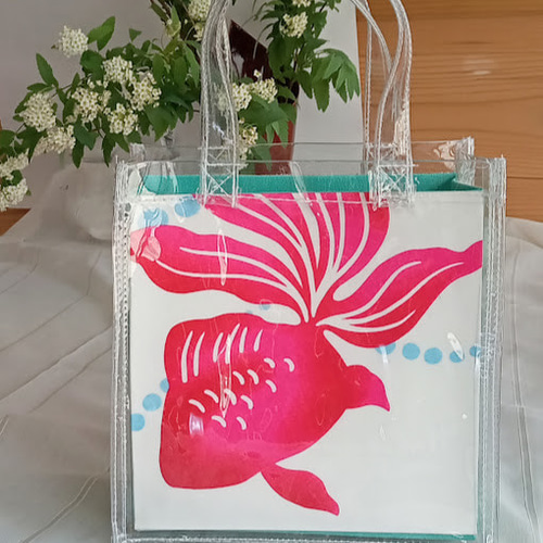 着物リメイク・ビニールバッグ 金魚 取っ手:透明 ハンドバッグ rei 通販 19731312Creema クリーマ。