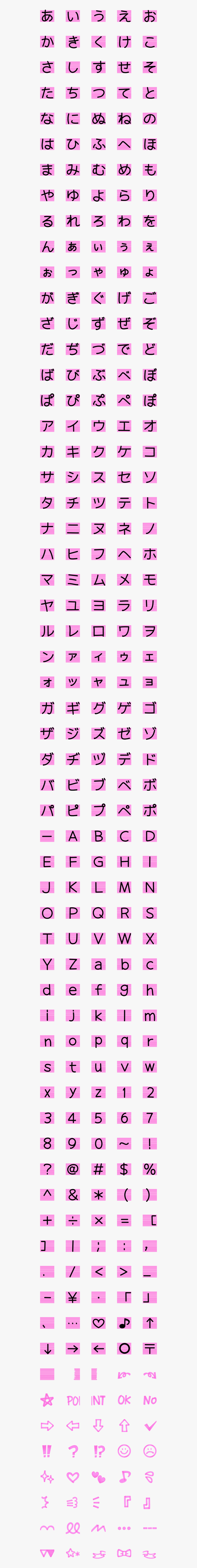量産型デコ文字白+ピンク かなカナ英数 のLINE絵文字画像、情報など。