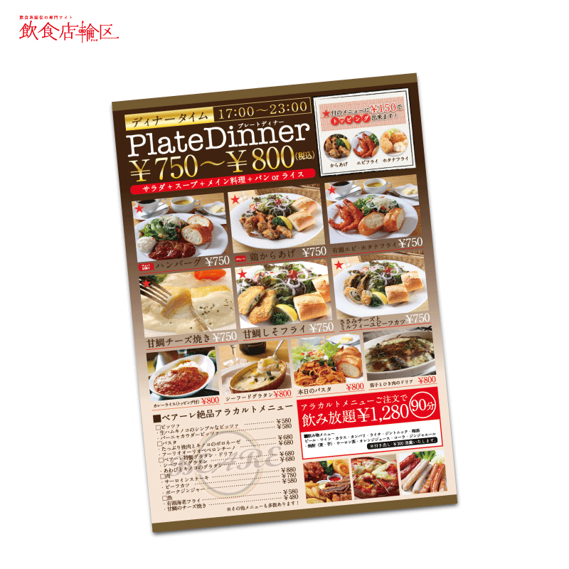 飲食店のチラシやポスターを無料でデザイン!バンフーオンラインショップ。