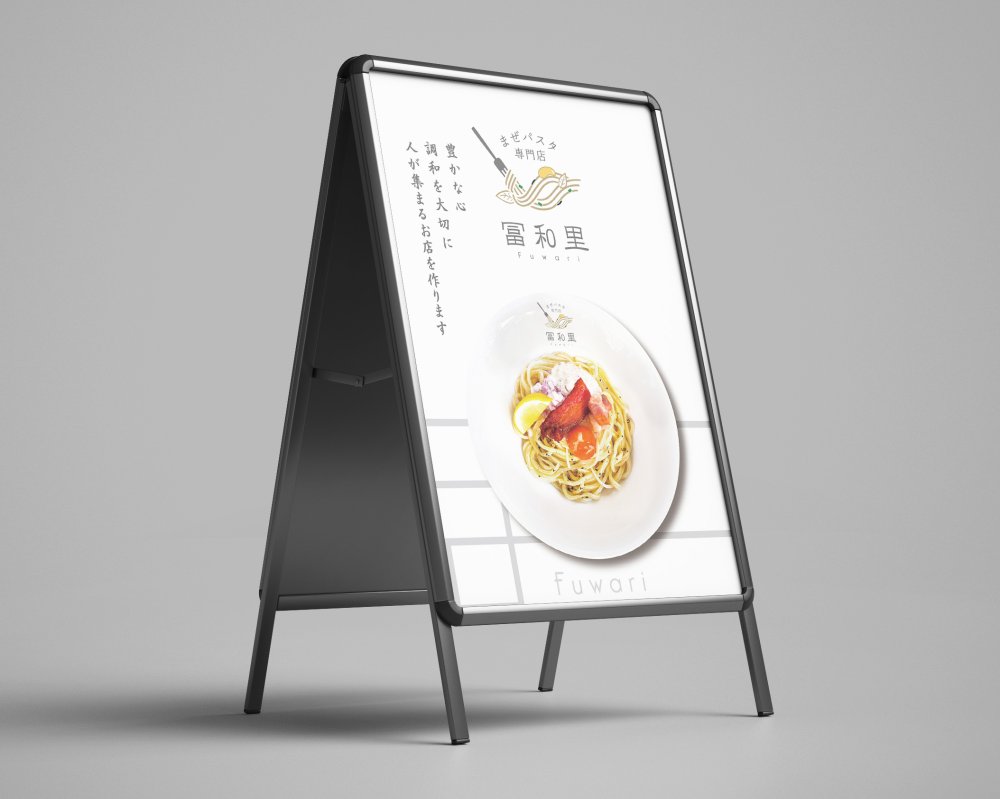 シンプル&モダン!冨和里のお洒落な店頭A1ポスターデザインをご紹介!東京神奈川の飲食店設計施工のHACOLABO ハコラボ商業空間デザイン ・舞台美術造形・ロゴイラストデザイン等。