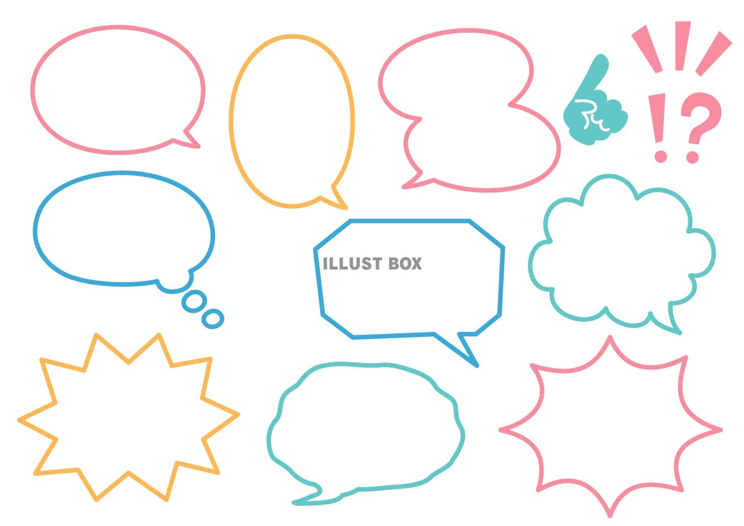 可愛いイラスト無料吹き出し7 シンプル カラフル 線ありイラストダウンロード。