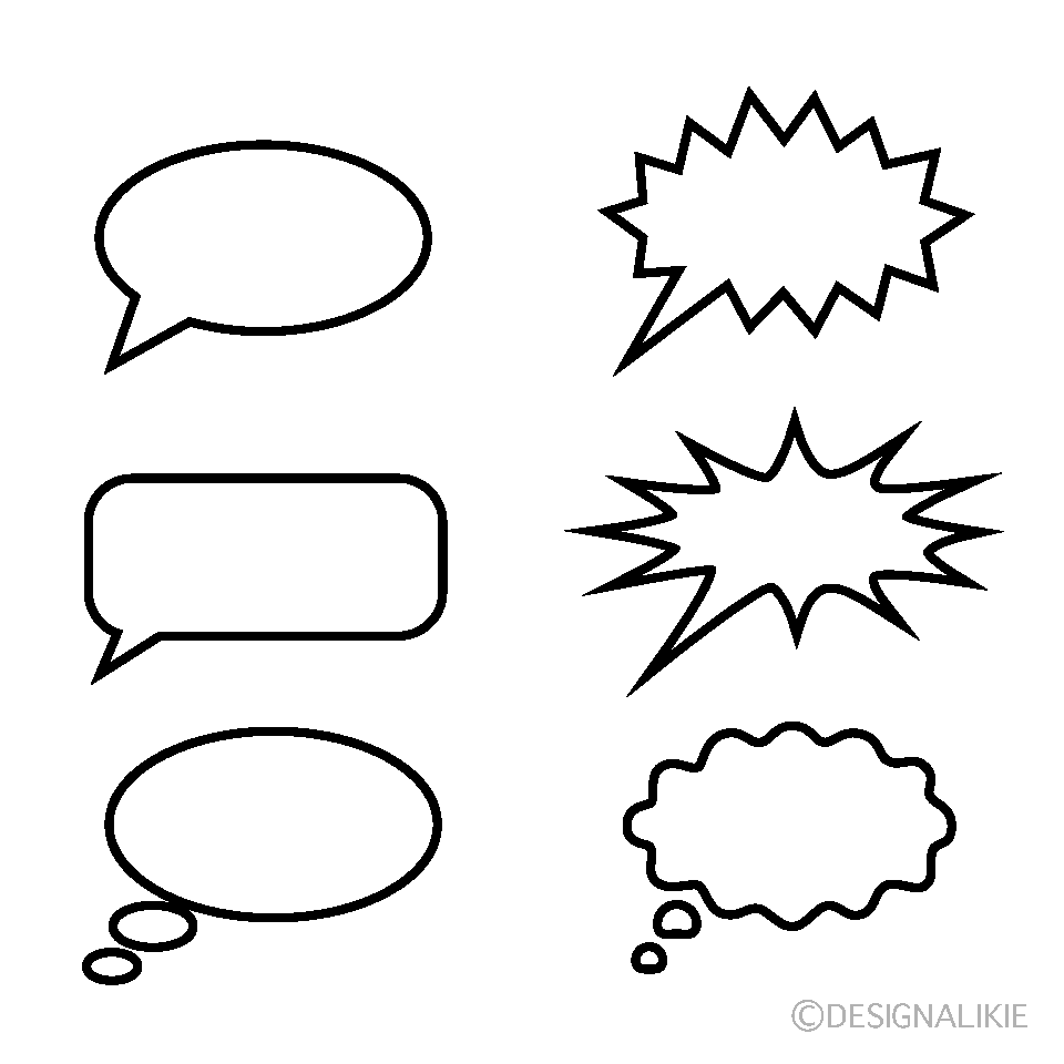 可愛いイラスト無料吹き出し シンプル 白黒 セットイラストダウンロード。