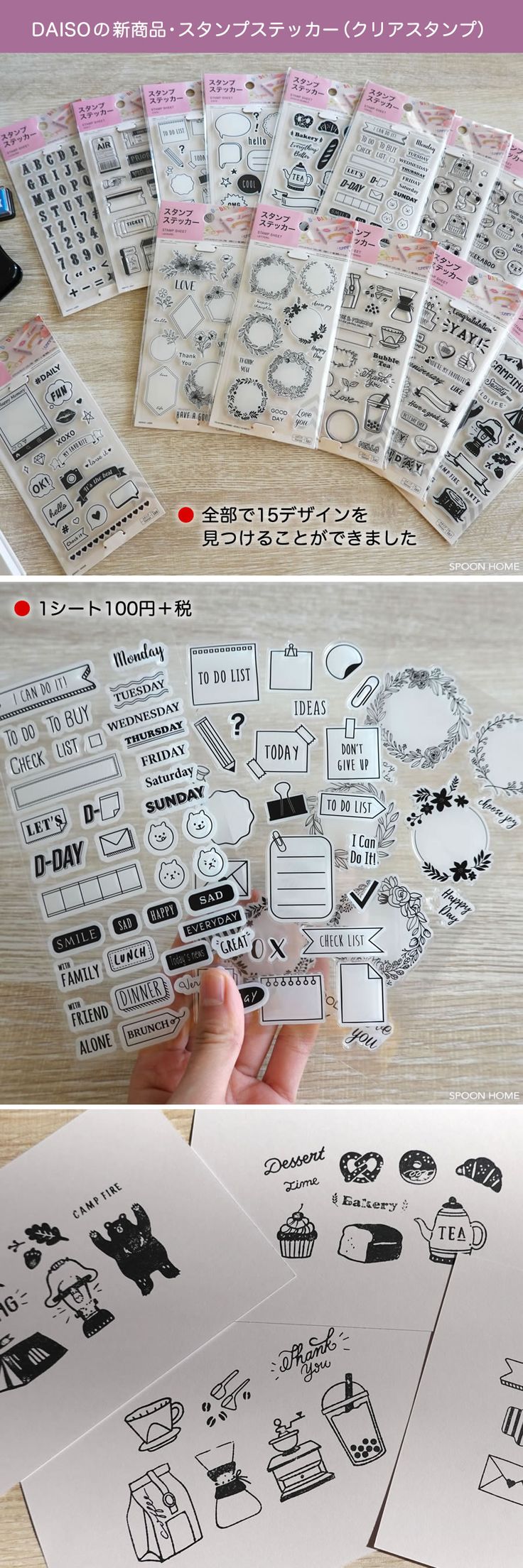100均ダイソーのクリアスタンプが可愛い。スタンプステッカーで手帳やノートをアレンジ。