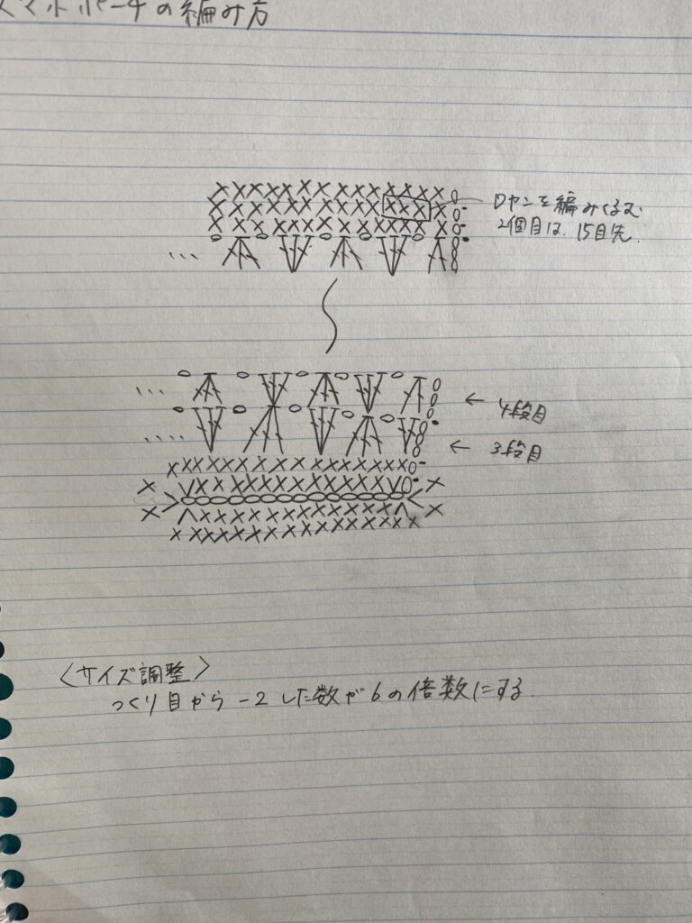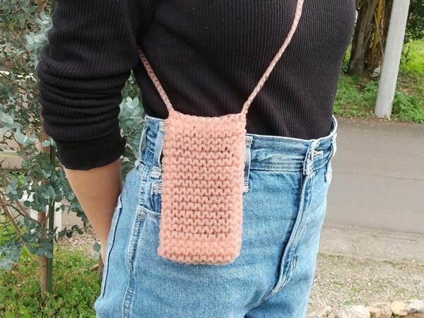 ショルダーにもなるスマホポーチの編み方と編み図chimataki knitting。