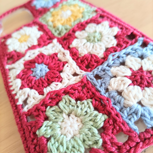 編み図 モチーフスマホショルダーの編み方 かぎ針 How to crochet a motif shoulder bag。