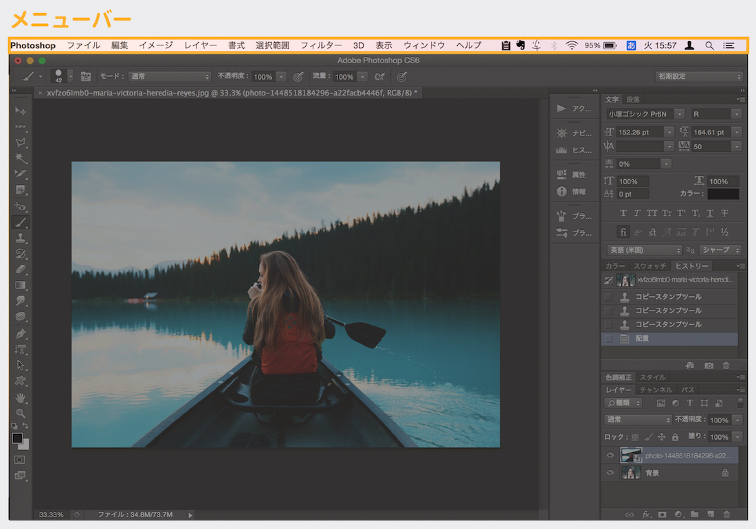 初めてのPhotoshop:画面の見方と各パーツの説明。