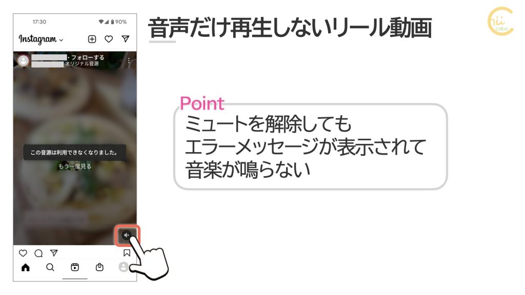 インスタリール「音源が利用できません」と出た場合の対策ぺちこのリール研究所。