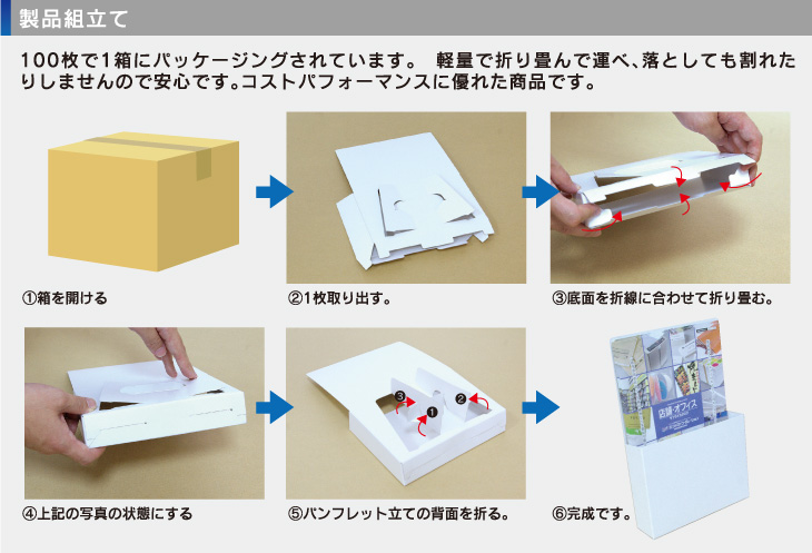 リーフレットスタンド オリジナルサイズ、自社名入りならお任せください 組み立て式。