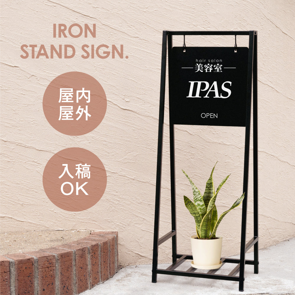 看板 店舗用 棚付き スチール製 アイアン スタンド看板表示内容自由 プレート両面 おしゃれ ショップ看板 パネルスタンド 屋外 UV印。
