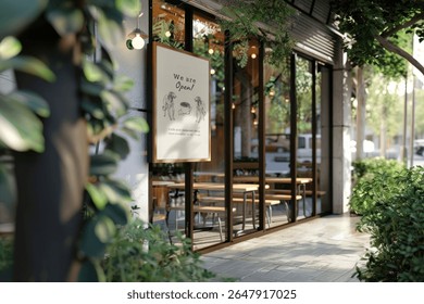 空の黒板に白い板カフェ外観。3 D レンダリングの写真素材・画像素材 Image 56330085。