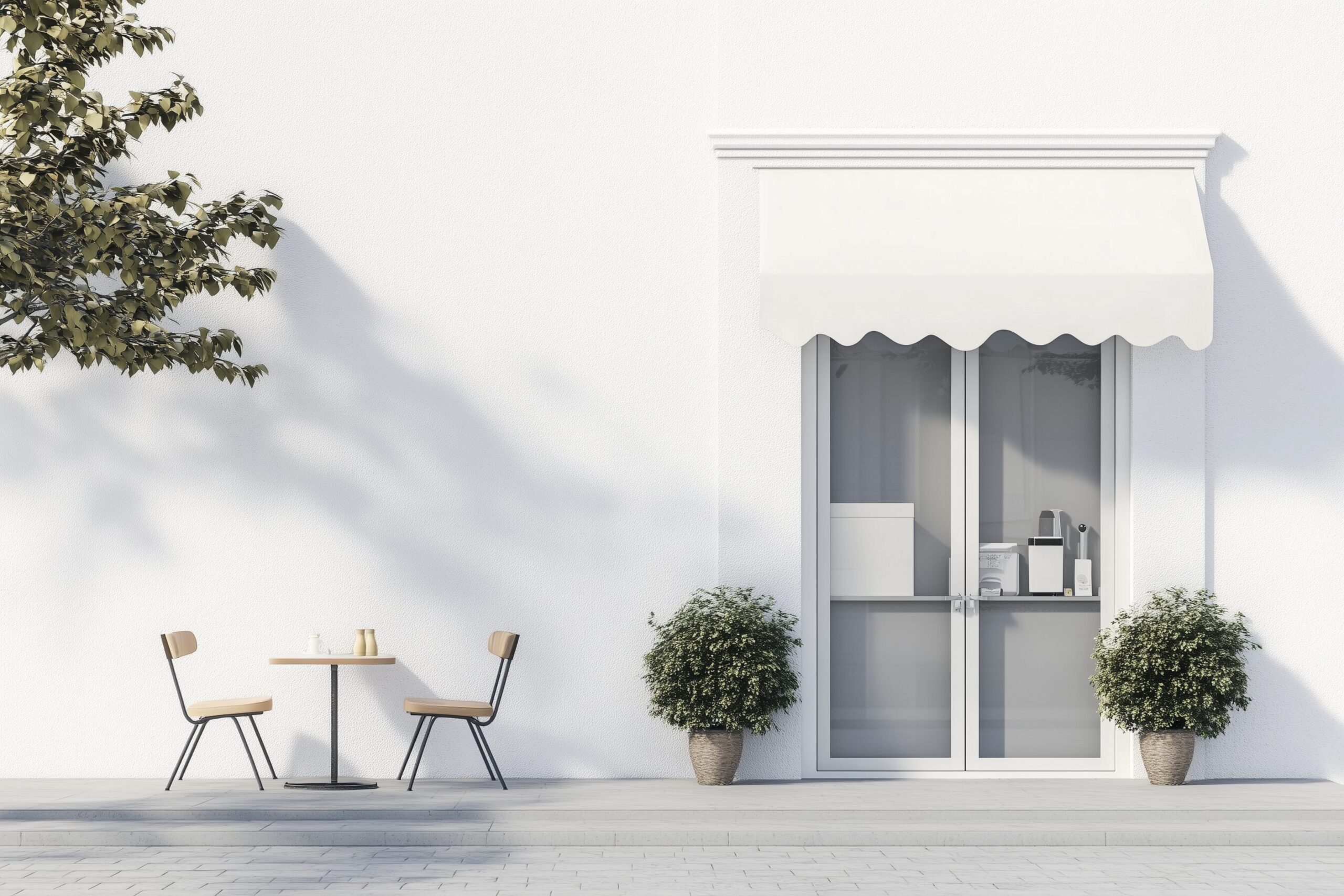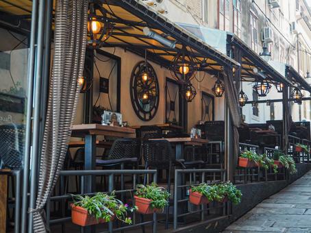 テラス席のある「カフェの外観」フリー素材3枚ブログのアイキャッチ・WEB広告・建築イメージ画像にFREEFREE”美容・女性専門”素材サイト。