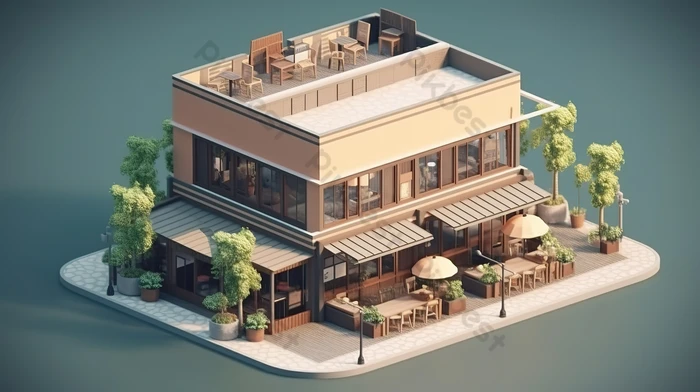 美しい3Dレンダリングでのアイソメコーヒーショップの外観の背景 背景 フリー素材JPG無料ダウンロード - Pikbest。