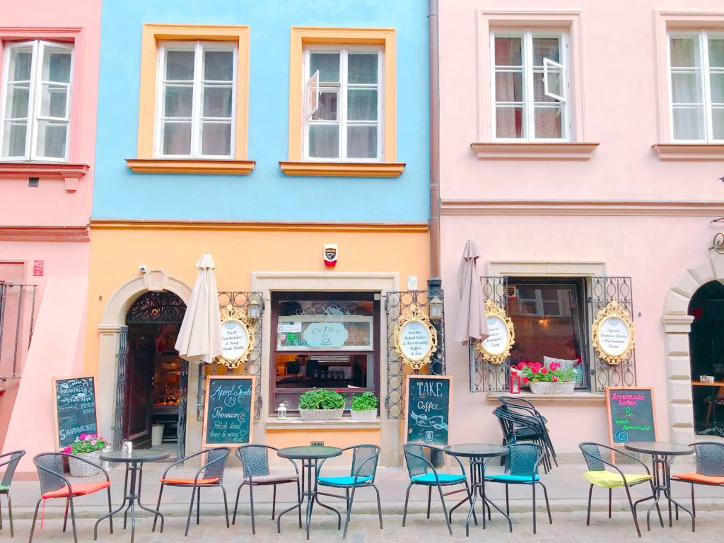 パステルカラーの外観が可愛いカフェワルシャワポーランドの写真素材旅パレット。