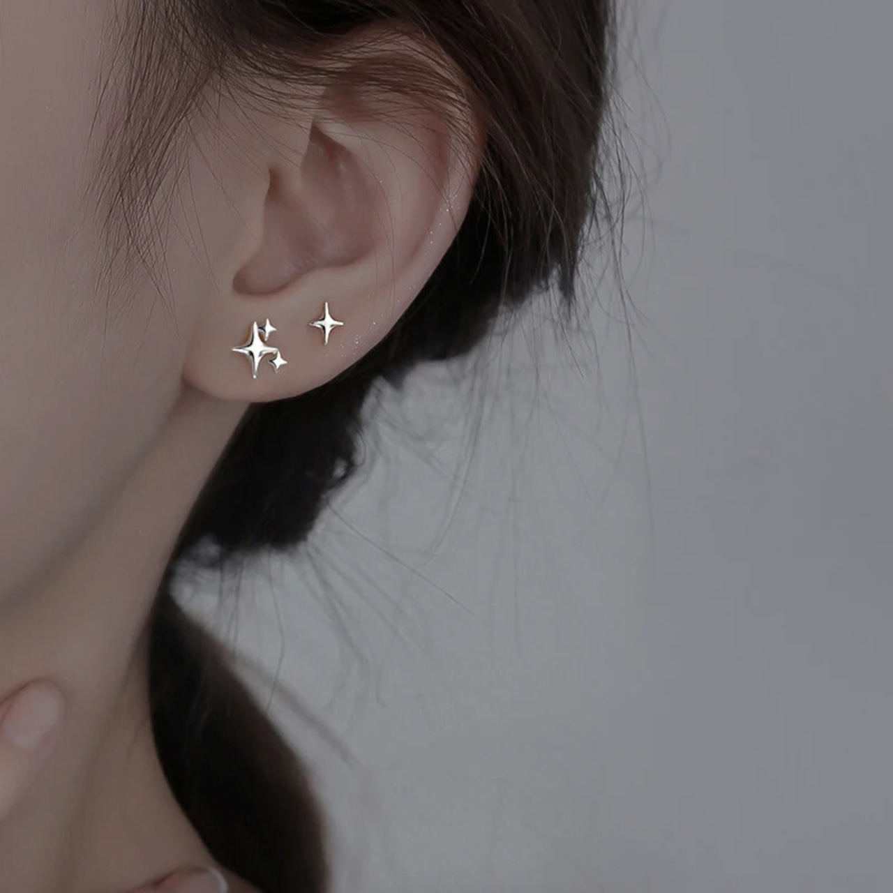 ピアス おしゃれ レディース アクセサリー キラキラ 光沢 ピン 小ぶり 辰年 干支 爪 クロー シルバー ストーン 黒 赤 普段使い シルバー925小ぶり キラキラ 四芒星 ピアス つけっぱなし 小さめ ピアス 金屬アレルギー対応 重ねつけ ピアス スタッド・一粒koiki_ac。