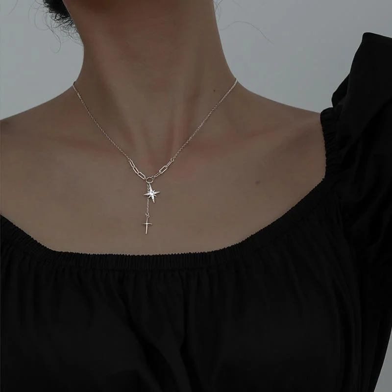 Mainstream.K メンズ シルバー925銀 個性的 星 二本チェーン 四芒星 クロス トレンディ シンプル アクセサリー プレゼント45 55cm 延長 ネックレス Mainstream.K メンズ 男性 シルバー925銀 竜 龍 高級感 龍彫り 長方形 ドラゴン チェーンシンプル アクセサリー 50 60。