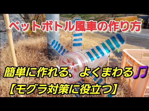 ペットボトル風車の作り方 簡単に作れる、よくまわる🎵 モグラ対策に役立つ- YouTube。