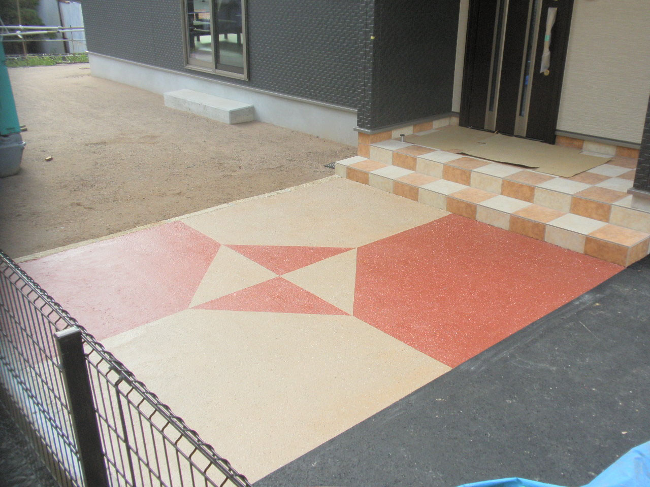 日進市K様邸 その3 アプローチのスタンプコンクリート完成です。日進市、長久手市エクステリア・外構工事。