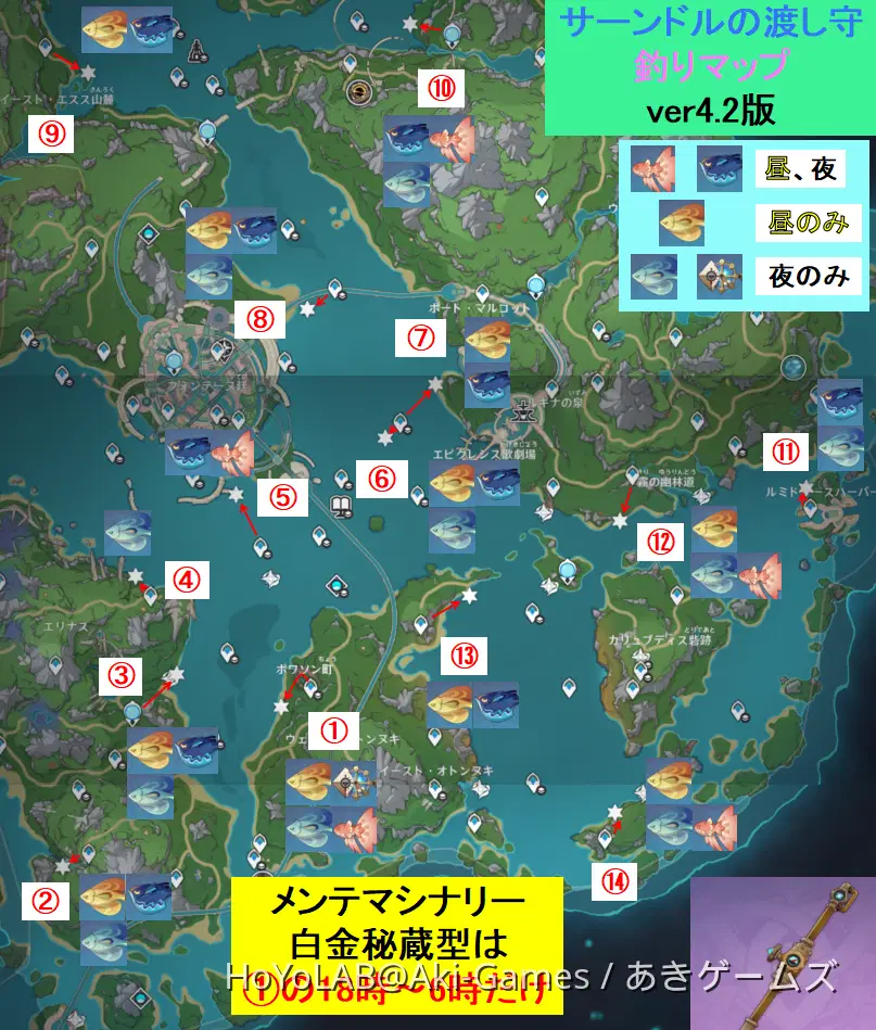 旧版 「サーンドルの渡し守」効率入手方法 必要な魚の種類・数 餌の作り方 釣りポイント「全14か所」 釣りの始め方 フリーナ 武器 無課金最適フォンテーヌ ver4.2攻略原神 Genshin ImpactHoYoLAB。