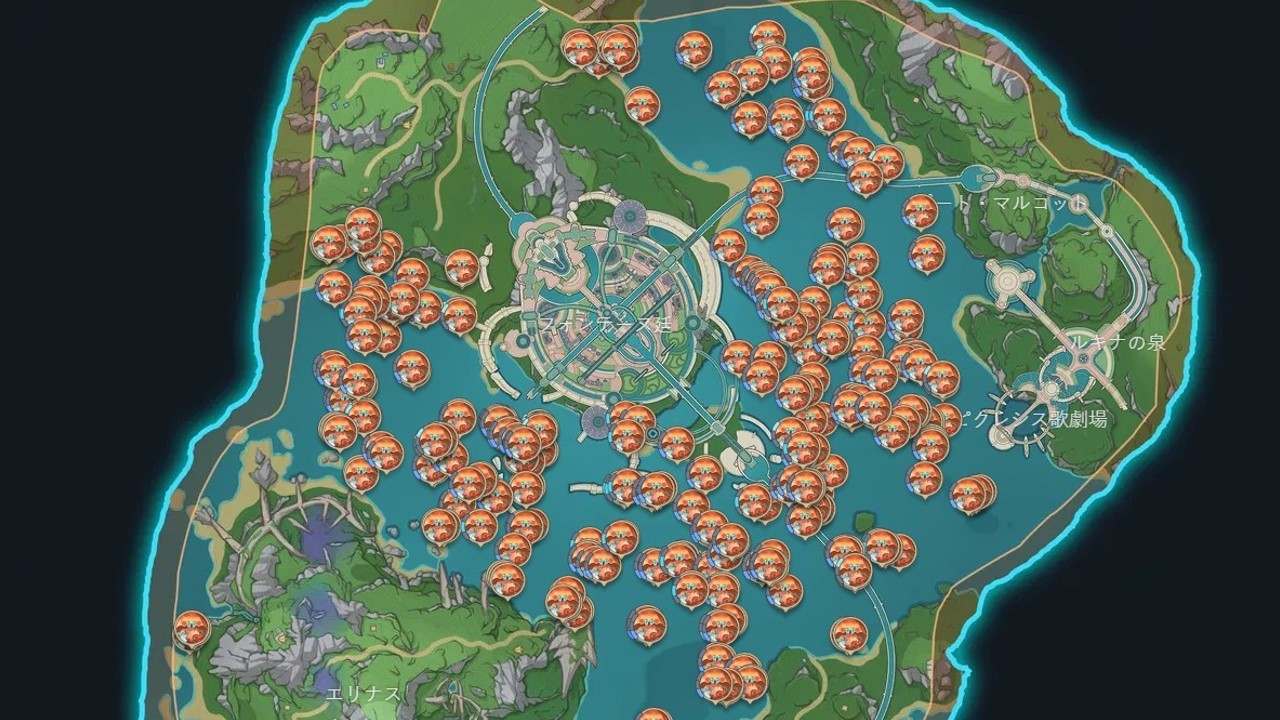 原神「フリーナ・素材」湖光の鈴蘭「すぐ取れる全63か所」効率ルート紹介!げんしん,突破育成素材,リーク無し,ナヴィア,シュヴルーズ。