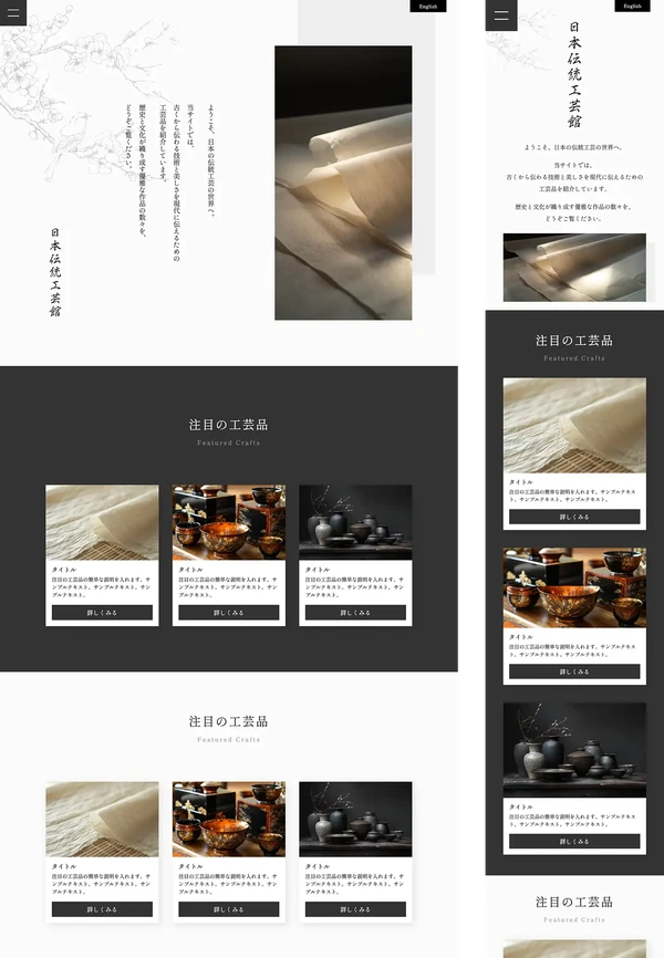 伝統工芸サイト 和風レイアウト 向け 無料ホームページテンプレート tp_wa2_white_black。