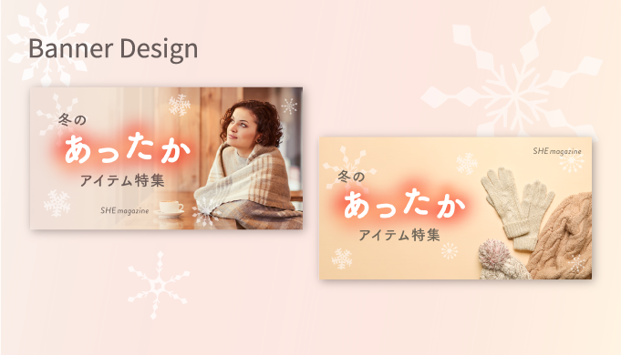 スクール課題:冬のあったかアイテム特集バナーYuki Design。