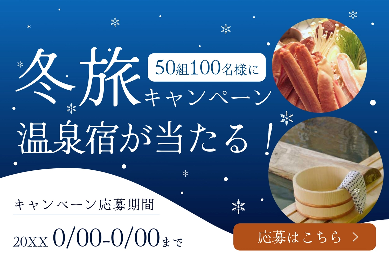 旅行・観光、かわいい、シンプル、スタイリッシュ・おしゃれ、ナチュラル・爽やか、カジュアル、イラストのバナー「冬の宮城県で見つけるとっておき旅」BANNER LIBRARY。