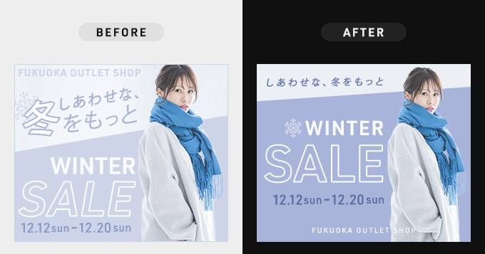 冬のセールのバナーイメージです。在宅で仕事してるので、 洋服の需要は激減していますが、セールはワクワクしてついのぞいてしまいます。😸webデザインwebデザイン制作バナー制作バナー広告バナー作成バナーデザインウエブデザイン制作事例webサイト。