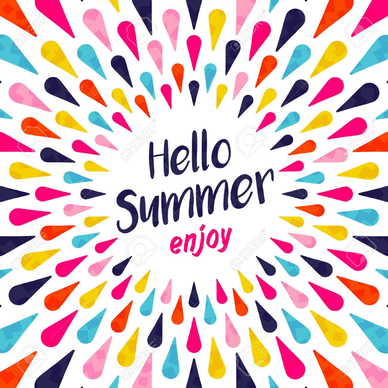 こんにちは夏の文字背景イラスト デザイン、カラフルな装飾と休暇の概念をお楽しみください。夏のパーティの招待状、タイポグラフィ グリーティングカードやポスターを楽しい。EPS10 ベクトル。のイラスト素材・ベクター Image 56597662。