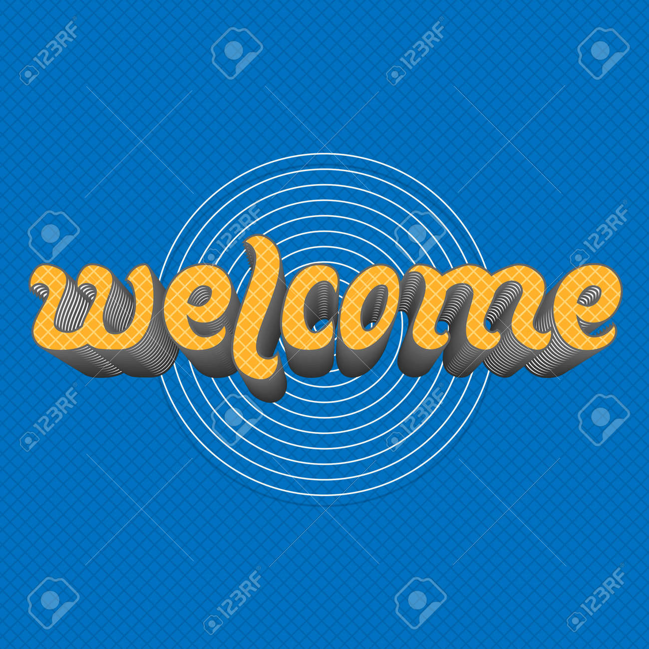 ようこそ、青い背景で黄色のレタリング文字を手書き。ヴィンテージ手描き文字デザインの写真素材・画像素材 Image 44379746。