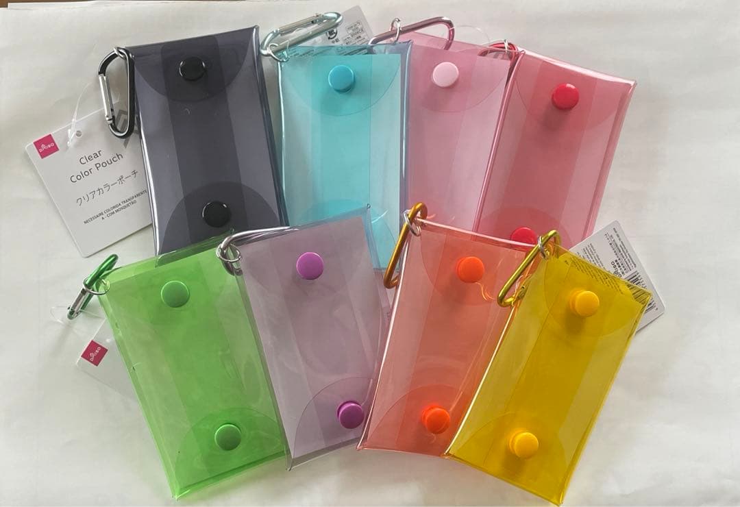 クリアカラーポーチダイソーカラビナ付き推し活8色。
