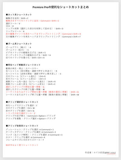 超効率UP Premiere Pro ショートカットキー 無料配布!!エディタ。